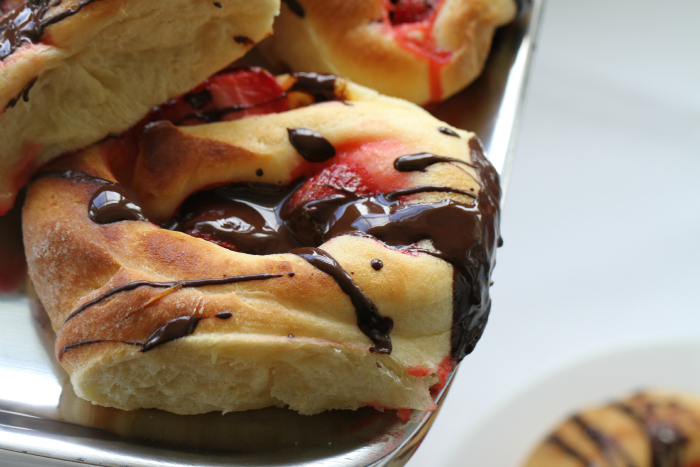 Yesterday I made these delicious rolls filled with peach jam and dark chocolate. The perfect treat on a Sunday afternoon… or anytime.