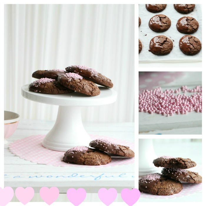 Today’s temptations are delicious triple chocolate chip cookies, and since this is Pink Ribbon Month I have decorated these with pink sprinkles.