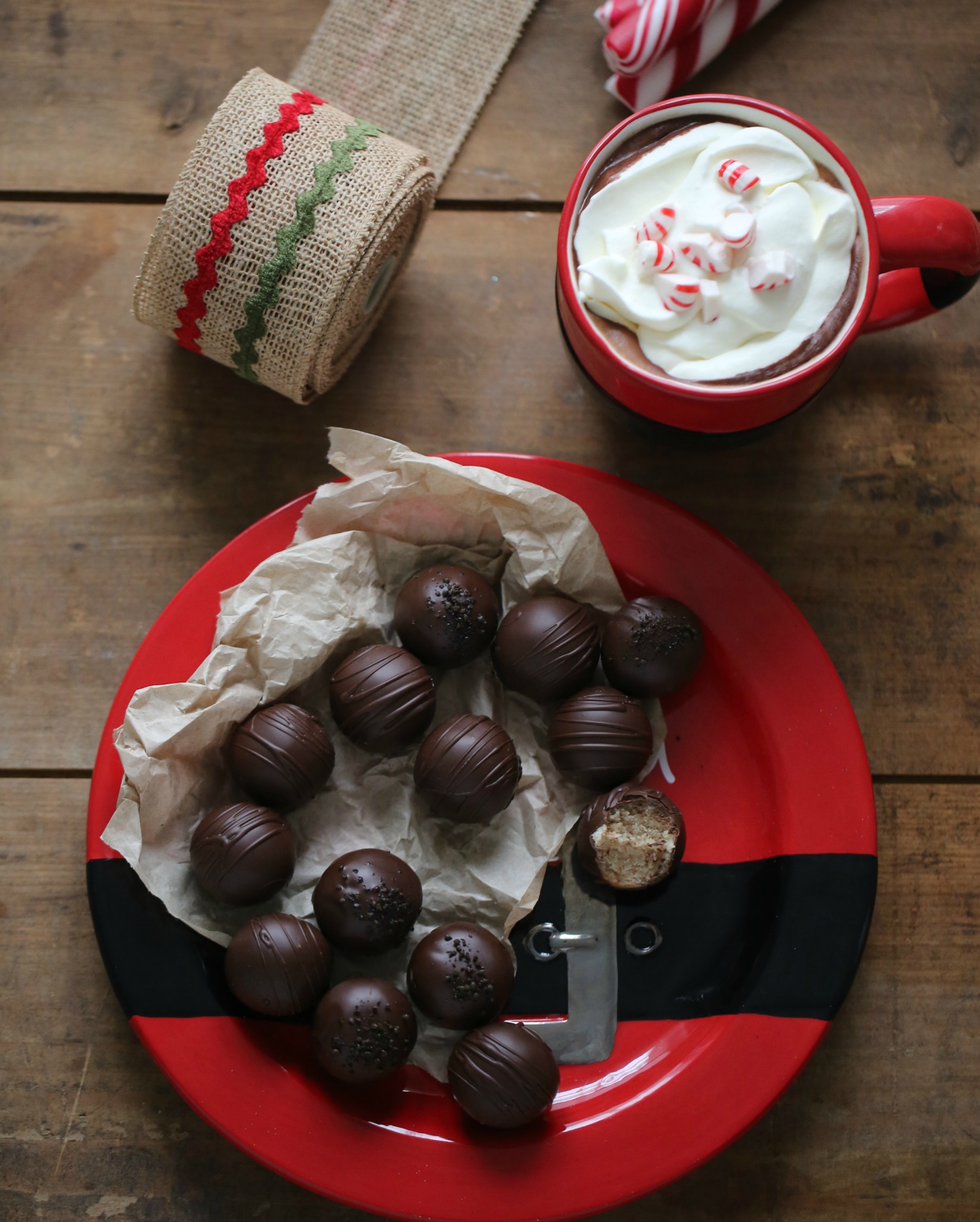 - Dip balls into melted chocolate, use a spoon to pour chocolate over the top, allow excess chocolate to run off. Sprinkle with a little bit of sea salt, raw licorice powder, or just enjoy them plain, with a delicious cup of hot cocoa.