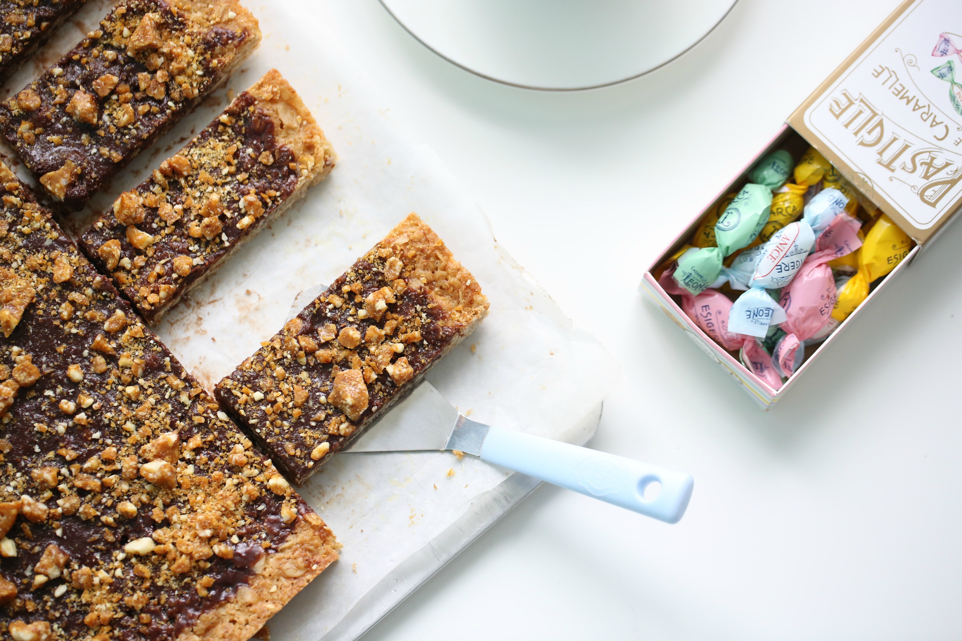 OATMEAL BARS WITH CHOCOLATE & CRUNCHY ALMOND CARAMEL (GLUTEN FREE)