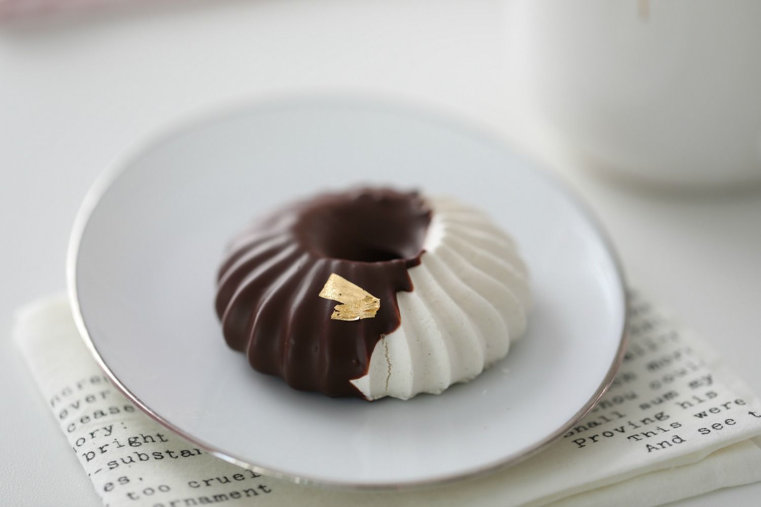 These Mocca meringues, I have dipped 1/2 the meringue in dark chocolate and added a cute little edible gold leaf on top, just because it is the holiday season.