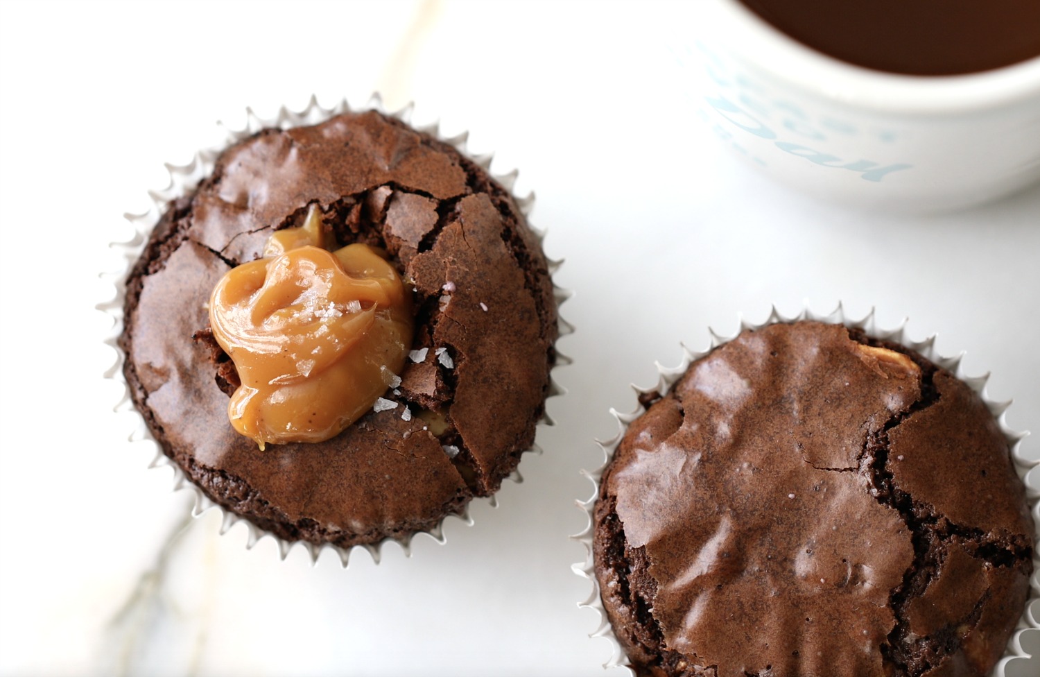 I made a little hole in the middle of each brownie and filled it with dulce de leche and drizzled it with some sea salt. These are so delicious, I hope you try these next time you make brownies.