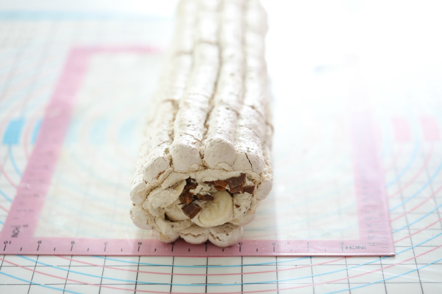 Budapest roll with mocha whipped cream, bananas and daim candy