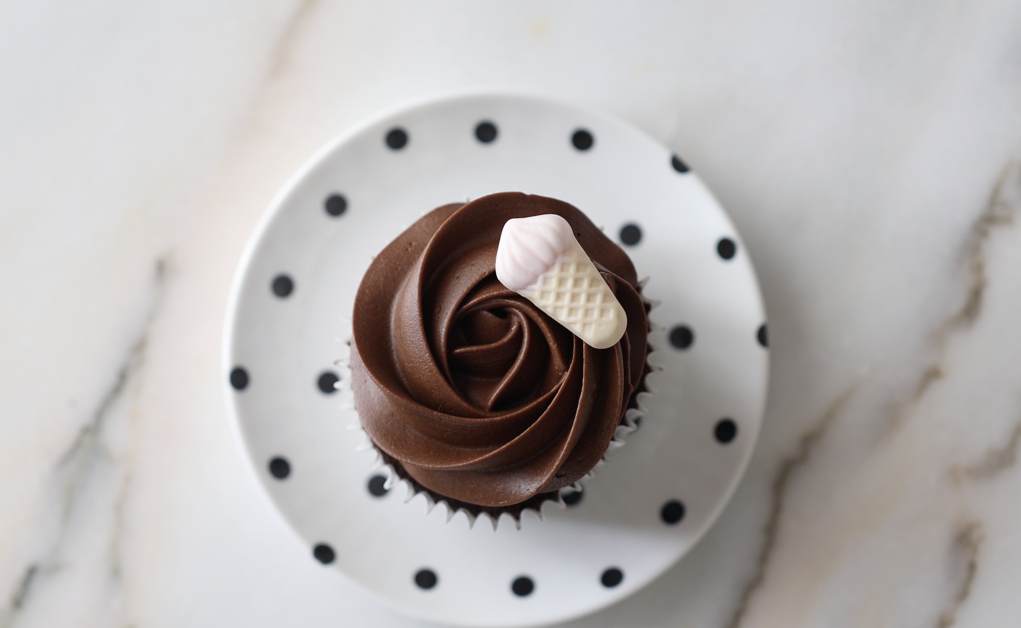 I like to keep the cupcake plain, with just a beautiful chocolate rose, and optionally topped with one candy.