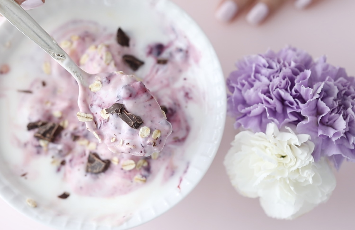 I love to add a spoonful of blueberry jam in my yogurt, together with oatmeal and some chopped dark chocolate, it is my favorite breakfast.