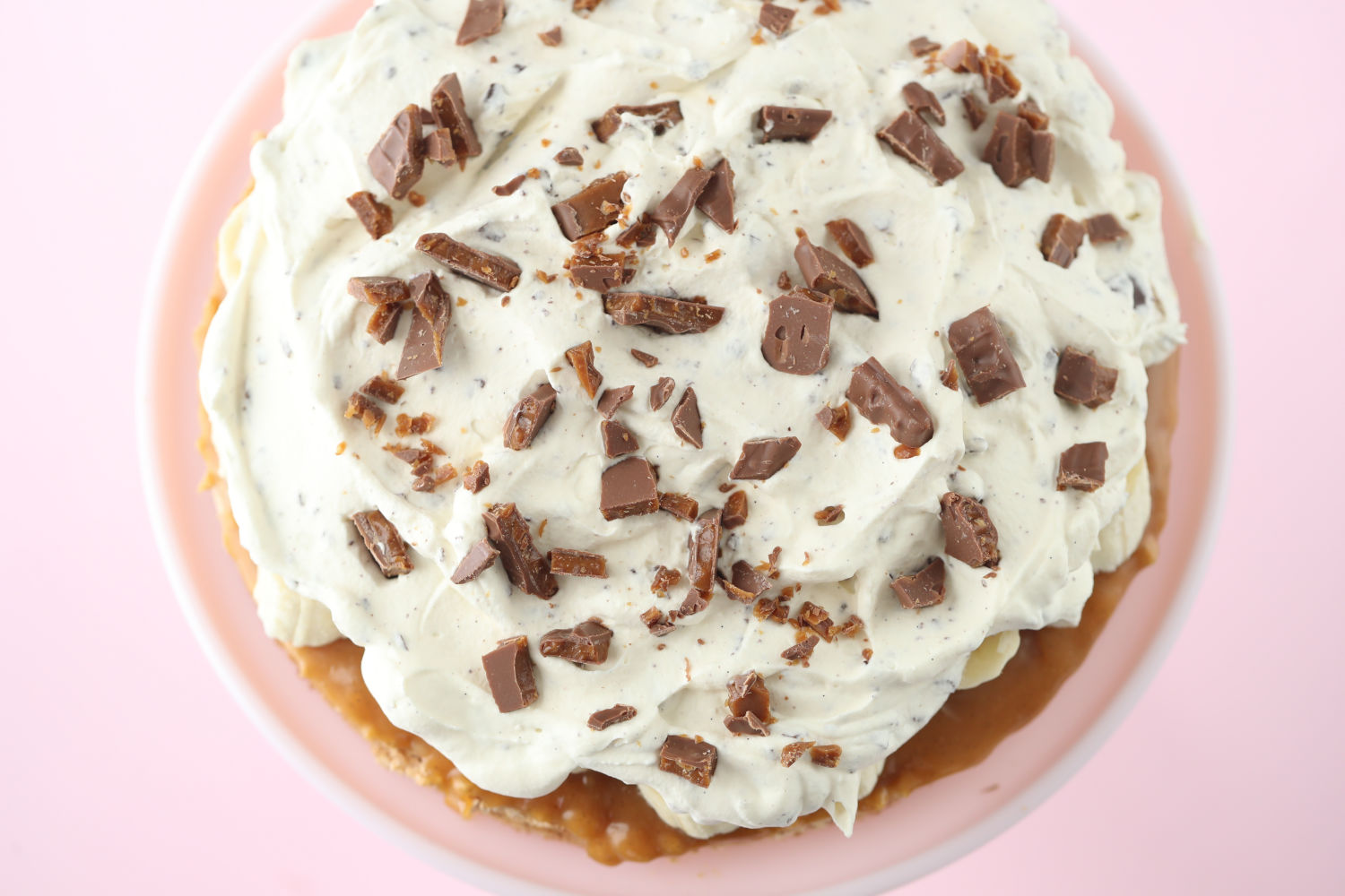 This time I added chopped chocolate in the whipped cream, the crunch it gives and the combination of the crust, the toffee, the bananas and cream, and chopped chocolate are just magical!
