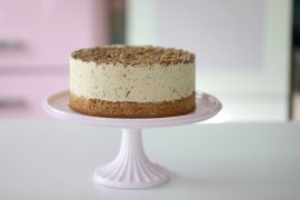 - Preheat the oven to 320°F (160°C). Line a 9-inch (24 cm) round springform pan with parchment paper, grease the sides and set aside.